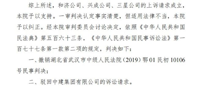2025年10月14日,湖北高院作出“(2023)鄂民终721号”终审民事判决,撤销了武汉中院作出的“荒唐”判决,驳回了中建集团的全部诉求。